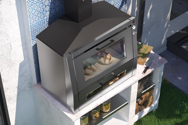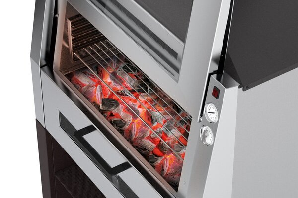 Char-Oven ist eine innovative Kombination aus Grill und Backofen in einem Gerät.Angetrieben von Kohle oder Holz, ist das exklusive geschlossene Grilldesign mit verschiedenen Positionierungsstufen für die Grillroste und einem funktionellen Auf- und Ab- Tür-System ausgestattet, um eine einfache Verwaltung des Kochens zu ermöglichen. Das Char-Oven-Garen wird durch eine Zwangslüftung unterstützt, die eine gleichmäßige Wärmeverteilung auf der gesamten Kochfläche ermöglicht.Die Ofenausstattung umfasst eine Reihe von feuerfesten Natursteinen, mit denen echte italienische Pizza, Brot und die raffiniertesten Desserts zubereitet werden können.